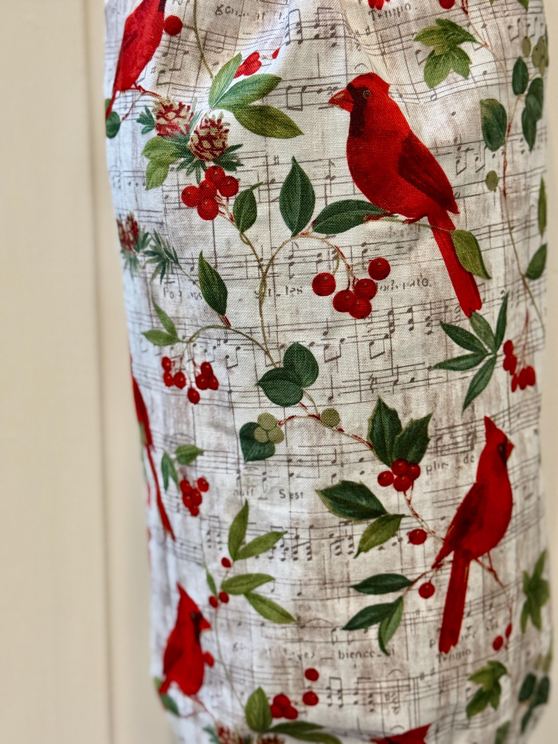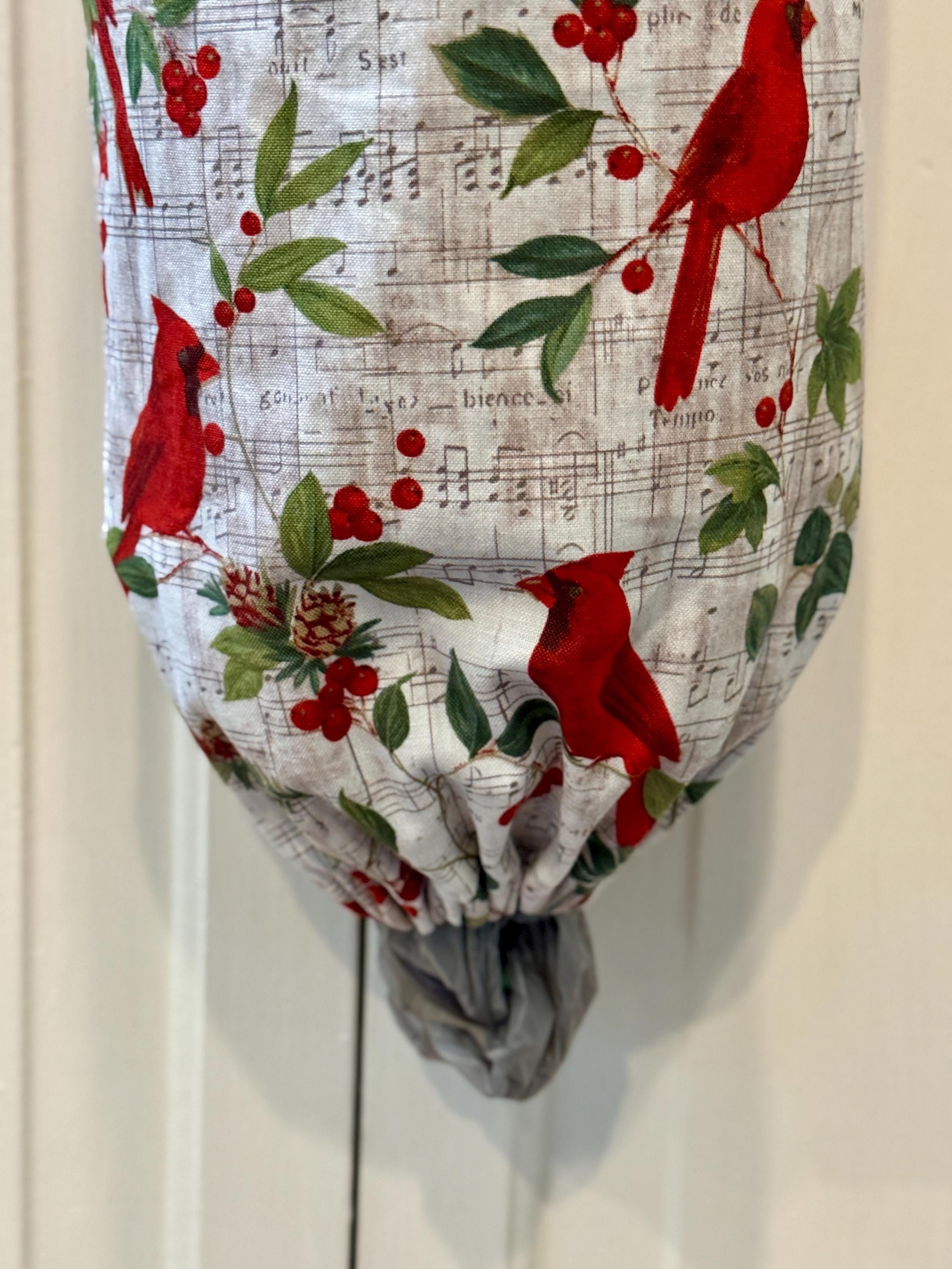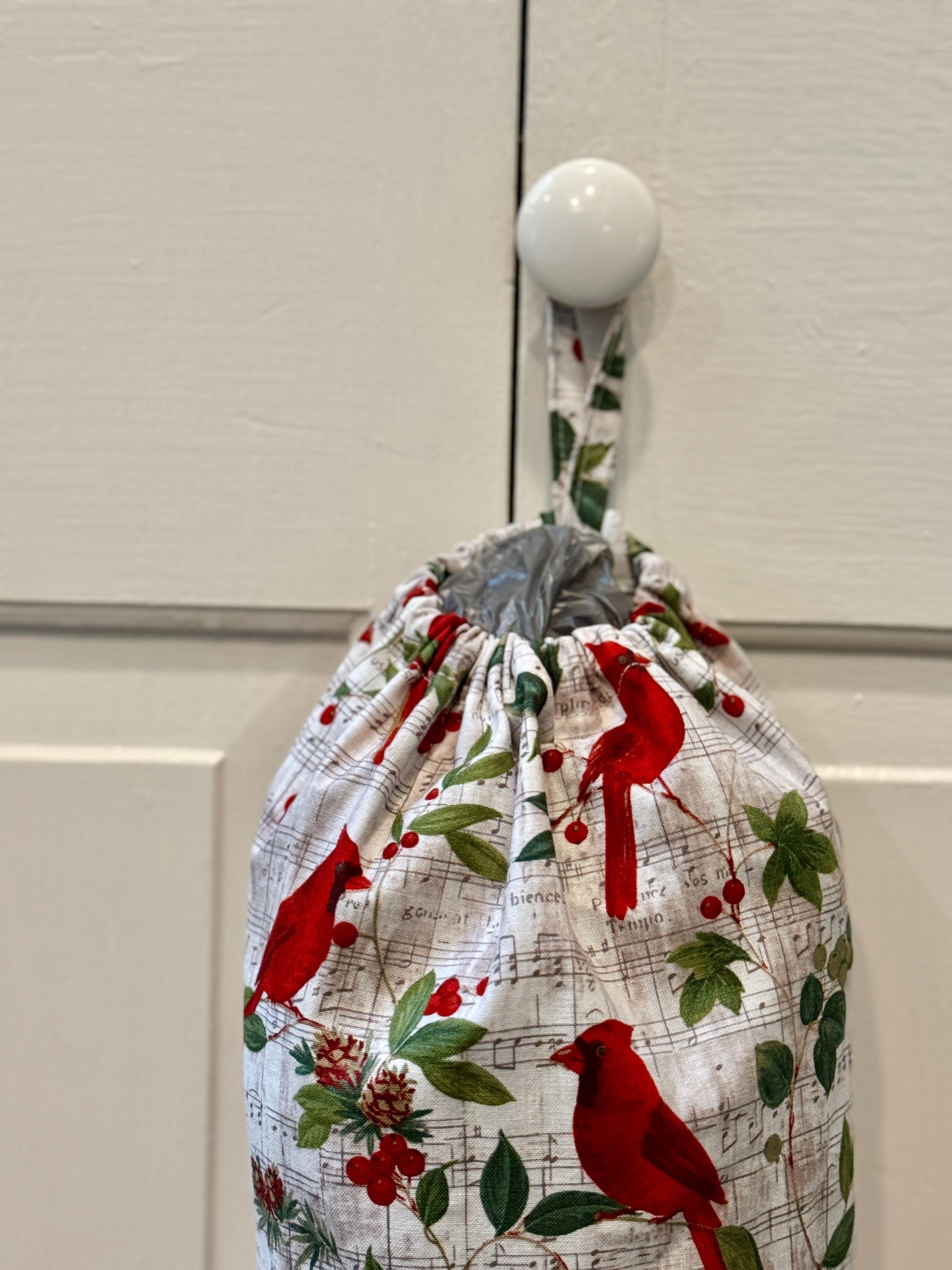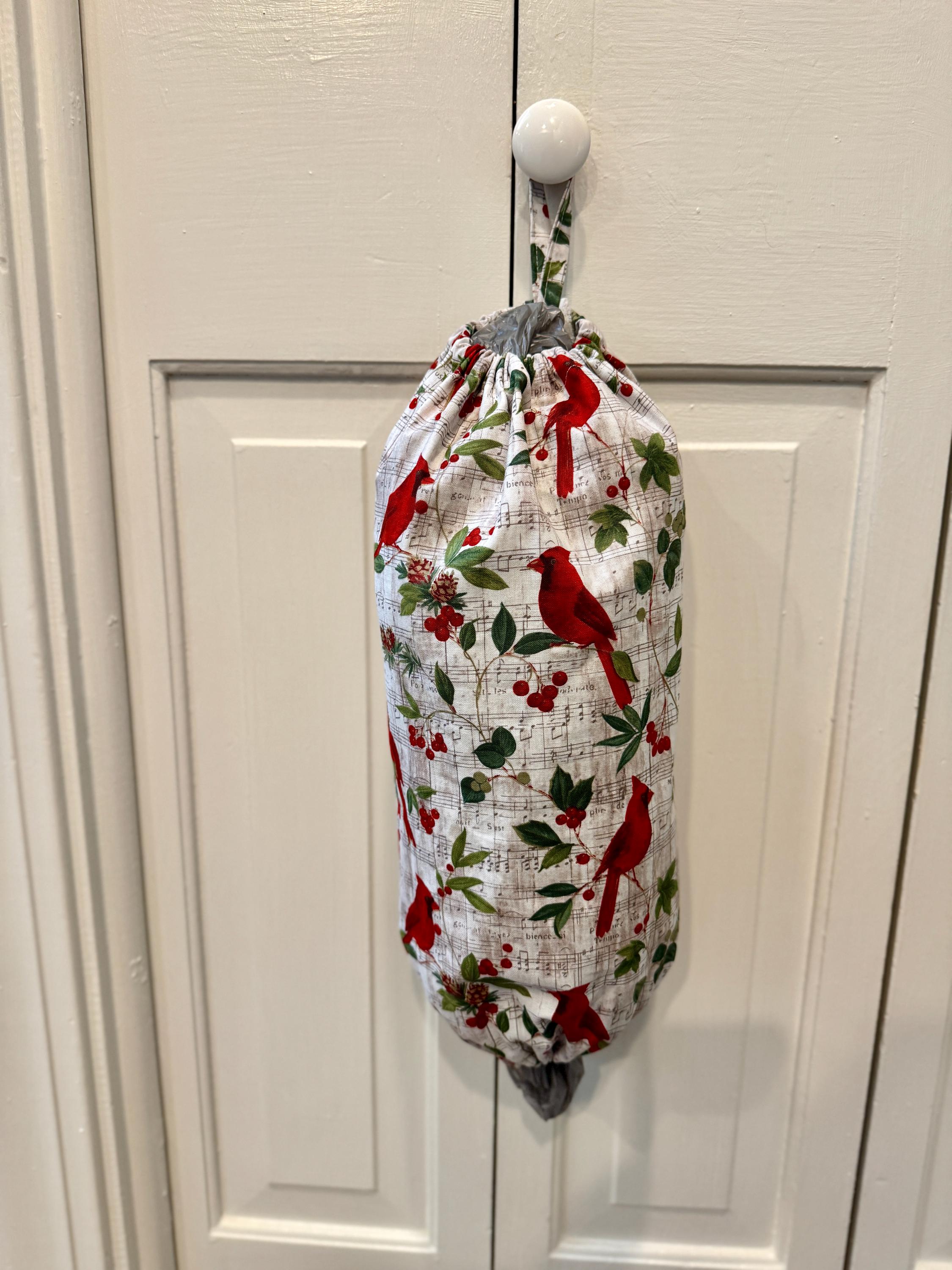 Keep your kitchen organized and eco-friendly with this charming and practical recycled bag holder. Crafted with care, this unique piece is designed to stylishly store and dispense your plastic grocery bags, keeping them neatly contained and ready for their next use.