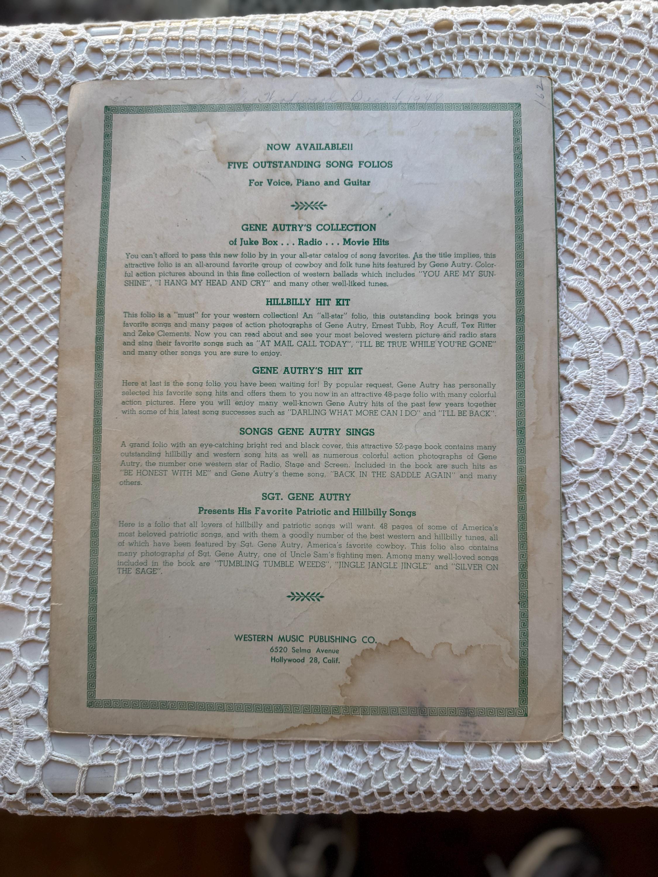 As recorded by: Gene Autry on Columbia Record No. 37942